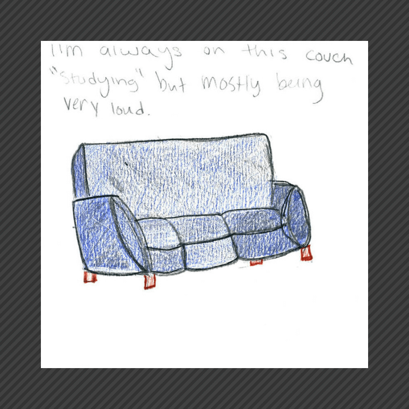 During a recent Feedback Friday, we asked students to sketch their favorite study spots. Below are some of the responses we received.[/vc_column_text][vc_column_text]